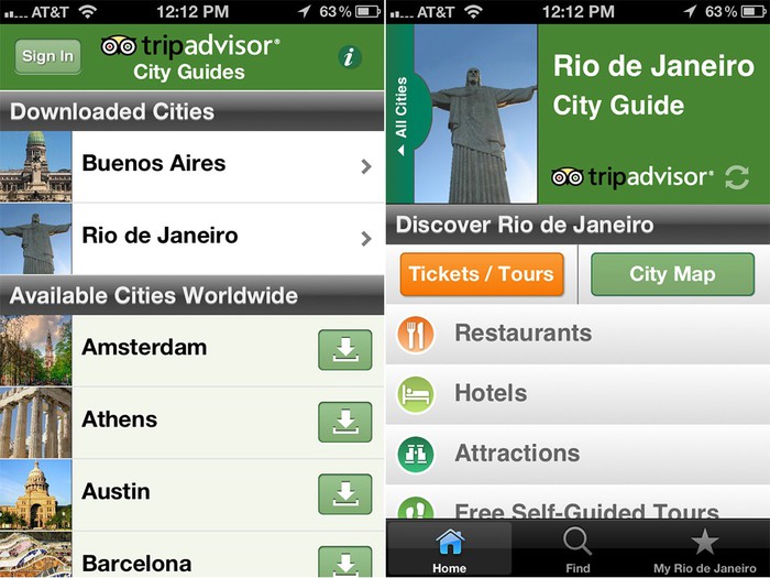 TripAdvisor City Guides là ứng dụng cho phép bạn sử dụng ngoại tuyến bản đồ và xem thông tin hướng dẫn về bất kỳ điểm đến nào.