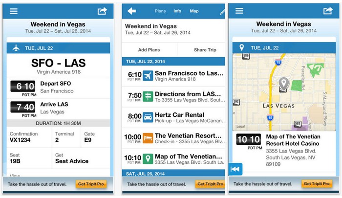 Chỉ cần chuyển tiếp email xác nhận chuyến đi của bạn đến tripit ứng dụng nhanh chóng tạo ra một lịch trình chi tiết hàng ngày. Bạn có thể tra cứu thông tin bất cứ khi nào, kể cả khi không sử dụng mạng.